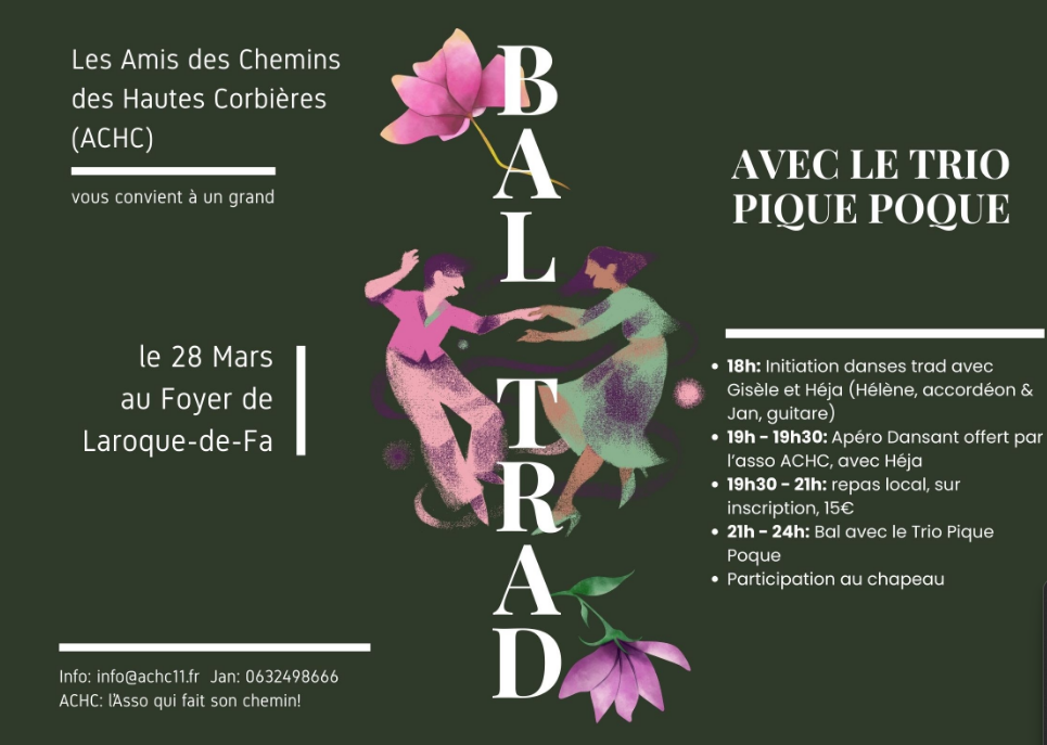 28 mars : Repas et bal trad à Laroque de Fa 19 mars 2026 par conseil_municipal Détail_repasTélécharger présentation_ACHCTélécharger