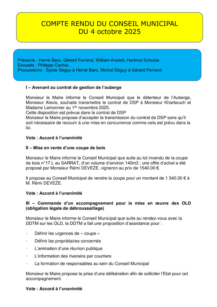 Compte-rendu du conseil municipal du 04 octobre 2025
