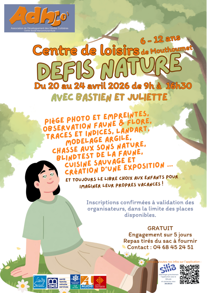 20 au 24 avril : centre de loisirs 6-12 ans à Mouthoumet (voir pj plus bas)